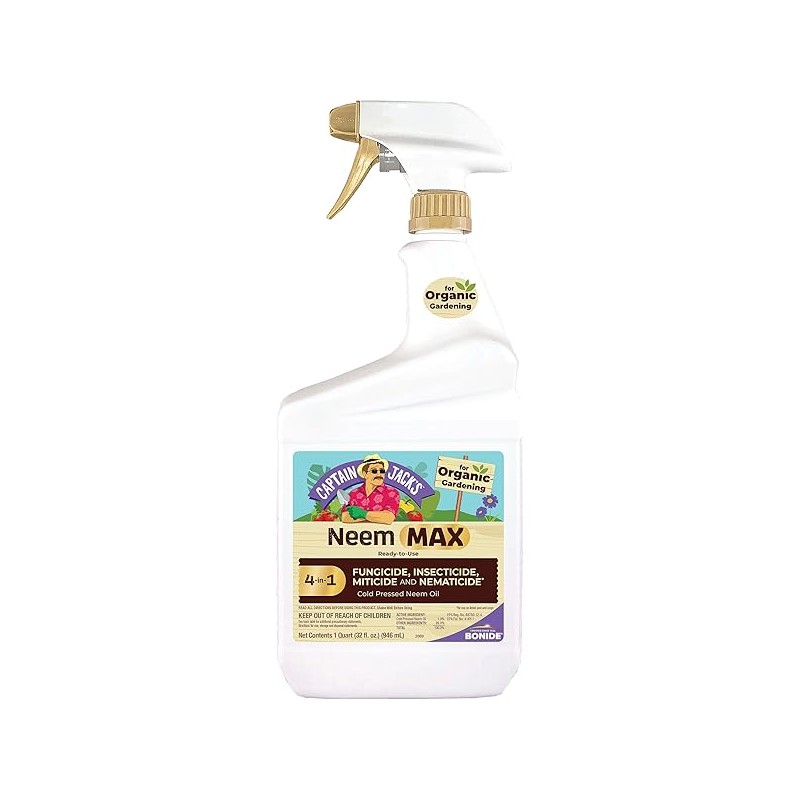 Bonide Captain Jack's Neem Max, 32 oz Ready-to-Use Spray Cold Pressed Neem Oil, Multi-Purpose Insecticide, Fungicide, Miticide and Nematicide for Organic Gardening