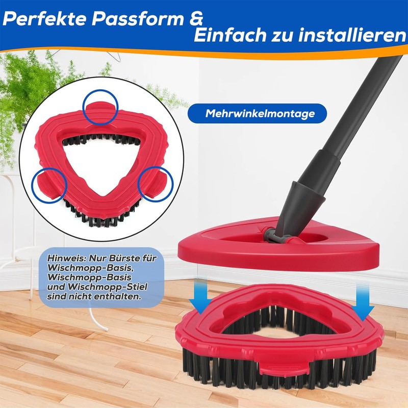 Constructed from high-quality PP plastic and stiff nylon bristles, this durable mop head is built to withstand long-term use and tackle even the toughest dirt and grime. Whether you're cleaning tiles, grout, bathtubs, or kitchen floors, the triangular shape ensures you can reach every corner with ease.