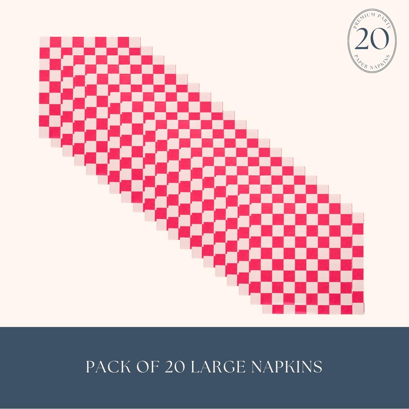 Bonjour Fete Hot Pink Checker Large Paper Napkins | Premium Party Table Decor, Birthday, Bachelorette, Valentine's Day | Happy Birthday Decorations, Lunch Napkins, 3-ply Paper, Pack of 20, 6.5" Folded