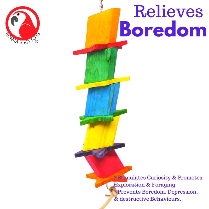 Bonka Bird Toys 2546 Wood Star Medium Parrot Chew Cage Toy, Conure, African Grey, Pionus, and Similar