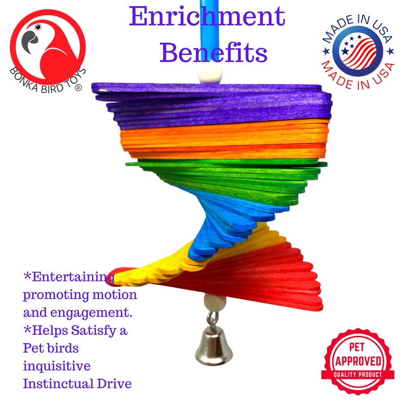 - Bonka Bird Toy designs use a diverse selection of stimulating bird-safe materials to ensure the mental and physical well-being of pet birds.