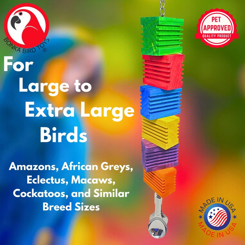 Bonka Bird Toys 3474 Huge Chewy Nicks 24" Tall Wood and Metal Bird Toy for Large and Extra Large Birds Like Macaws Cockatoos African Greys
