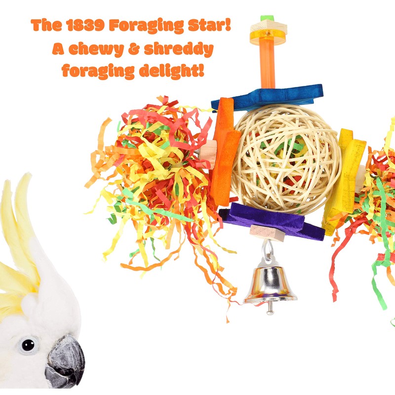 - The 1839 Foraging Star from Bonka Bird Toys is a classic and colorful shredding delight for your pet