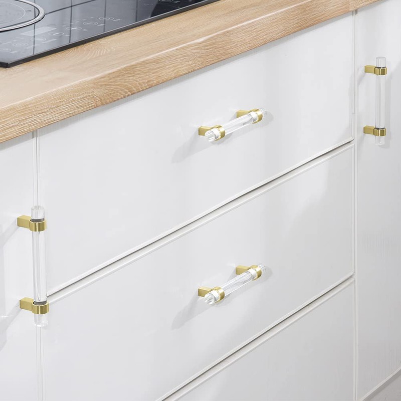 - 【Material】Our kitchen cabinet handles are made up of high quality glass handle and Brass base. The handle and base are firmly combined, and there is no need to worry about color fading. Comfortable touch, no sharp edge, very safe for children and the elderly.