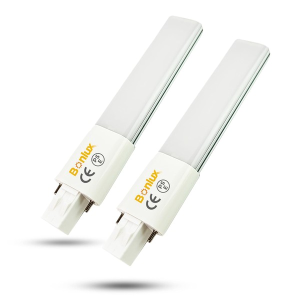 Bonlux 2-Pack 6W GX23 2-Pin LED PL Retrofit Lamp 13W GX23d CFL Replacement 180° Beam Angle Daylight 6000k LED PL Horizontal Recessed Down Light Bulb (Remove/Bypass The Ballast)