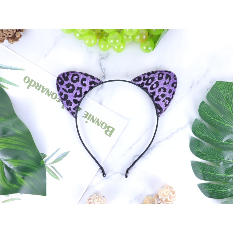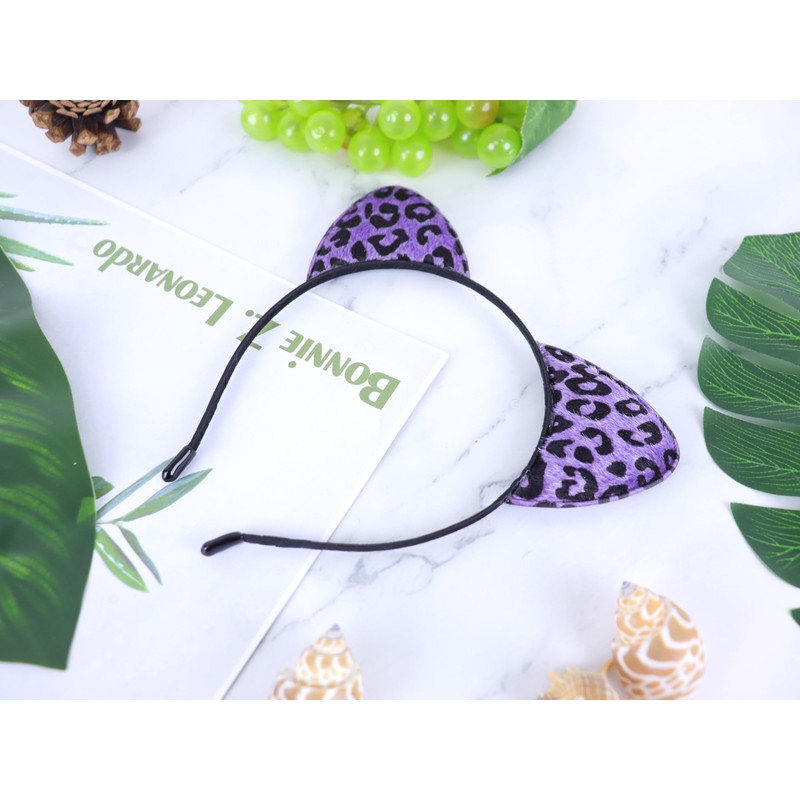 Bonnie Z. Leonardo Furry Leopard Cat Ears Headband Leopard Print Purple