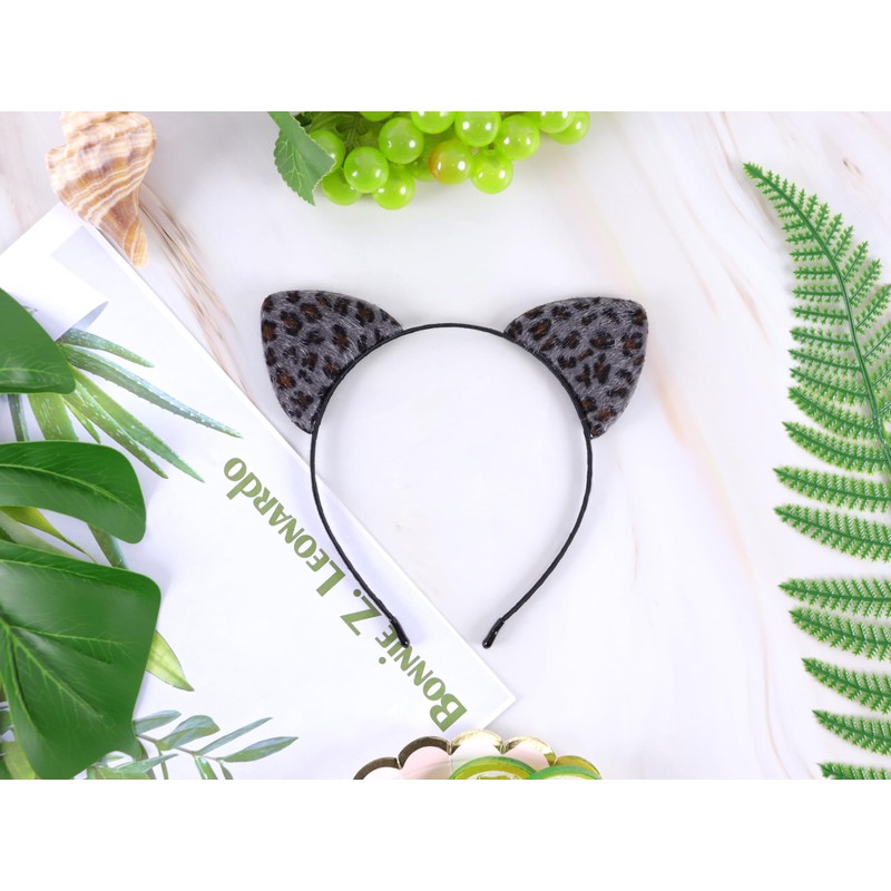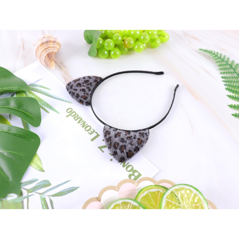 Bonnie Z. Leonardo Leopard Ears Cat Ears Headband Furry Grey Leopard
