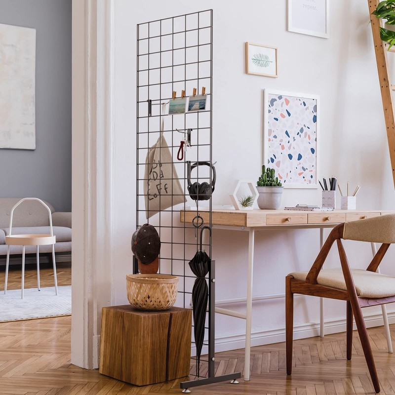 Bonnlo 6' x 2' Wire Grid Panel Tower with T-Base Floorstanding, Thicker 5mm Wire, 180 LBS Weight Capacity Grid Wall Display Rack with Hooks 4", 6" and 8", 2-Pack Black