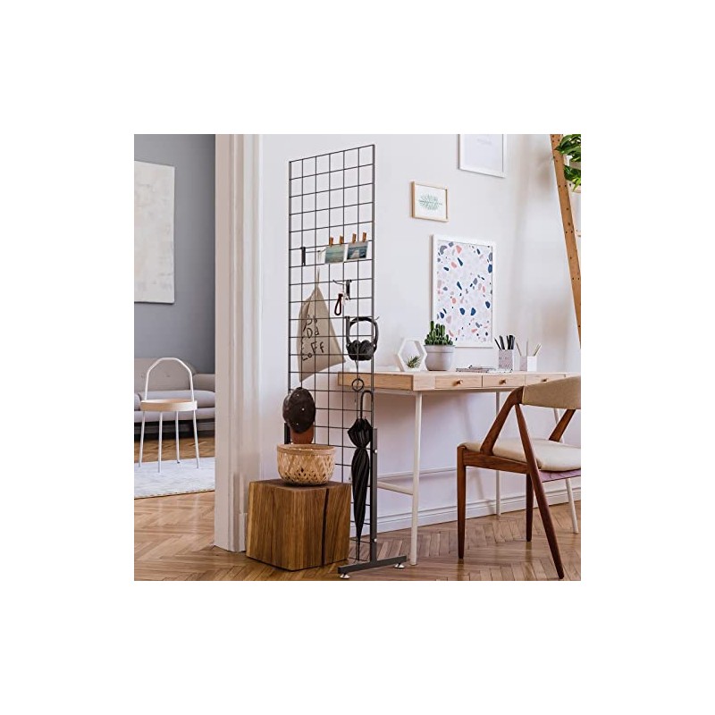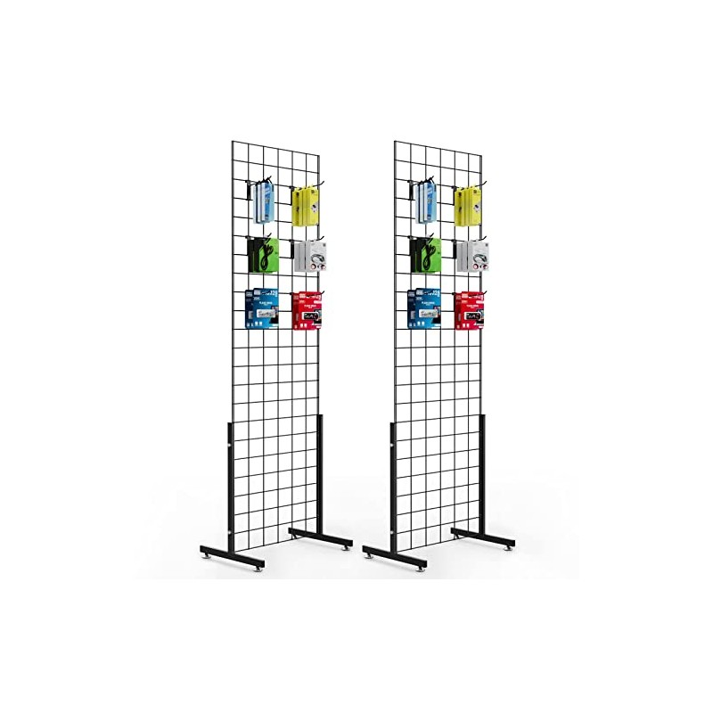 Bonnlo 6' x 2' Wire Grid Panel Tower with T-Base Floorstanding, Wire Grid Wall Display Rack with Hooks 4", 6" and 8", 2-Pack Black