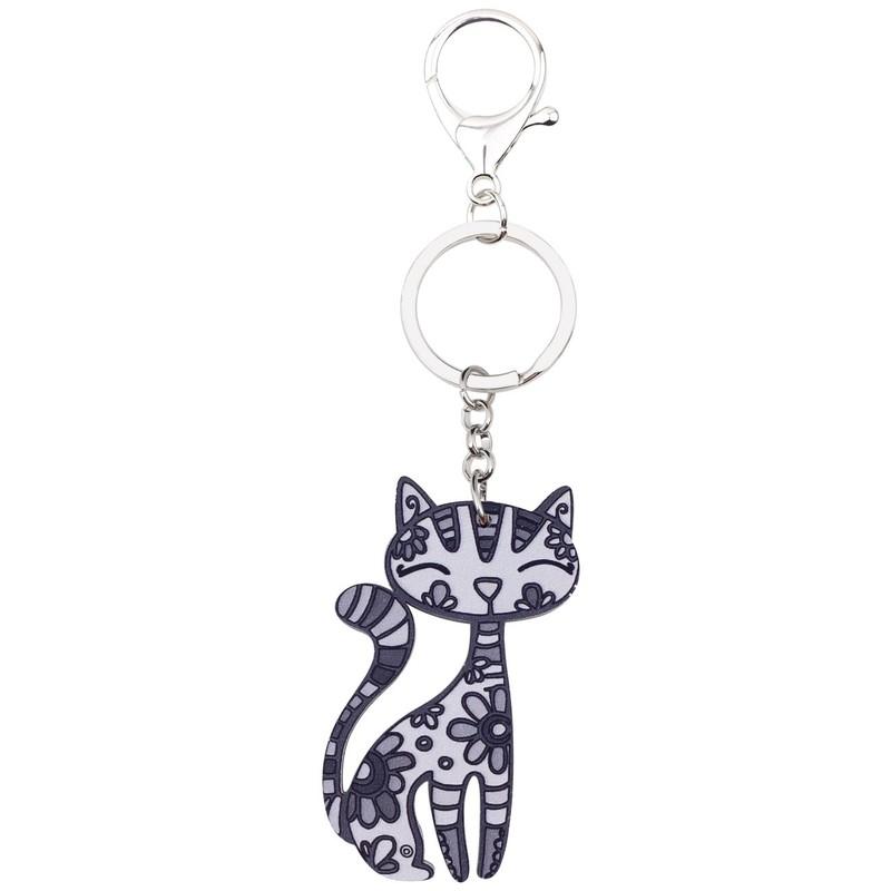 BONSNY Acrylic Cat Key Chains For Women Car Purse Bag Rings Pendant Girl Gift Charms (Grey)