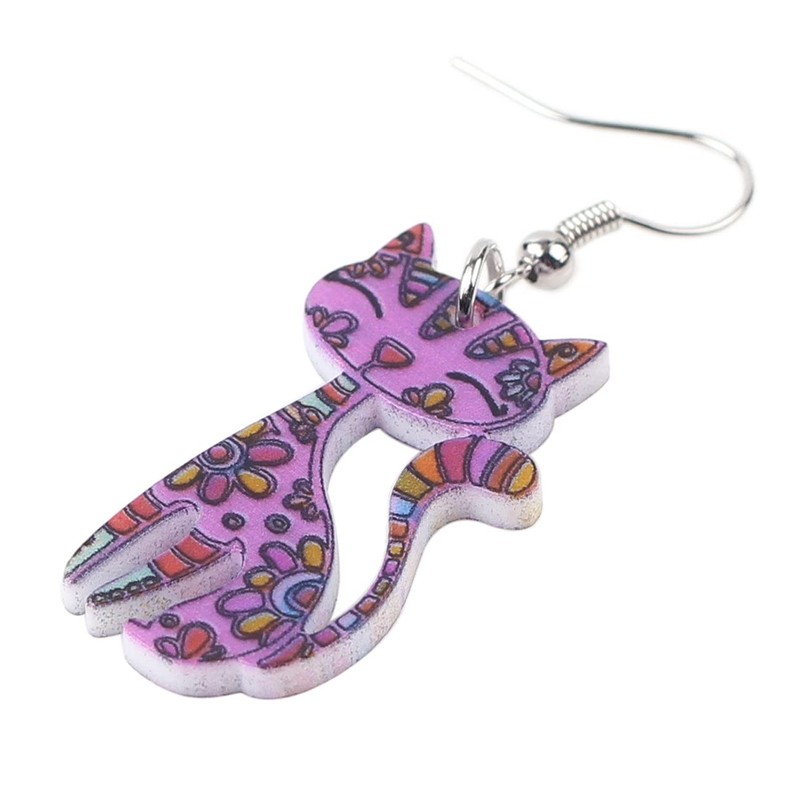 BONSNY CAT Collection "CAYLEIGH Statement Pop-Art Kitten Long drop Earrings (Purple)