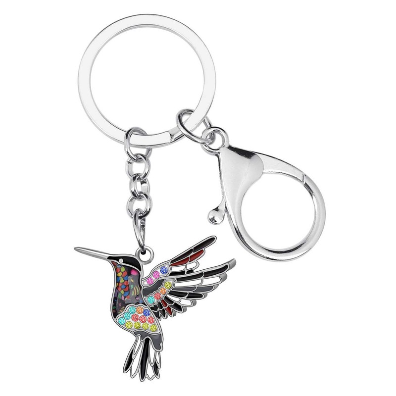 BONSNY Enamel Alloy Floral Hummingbird Bird Key Chain Keychain Ring Animal Jewelry For Women Girls Bag Car Charms Gift (Silver Black)
