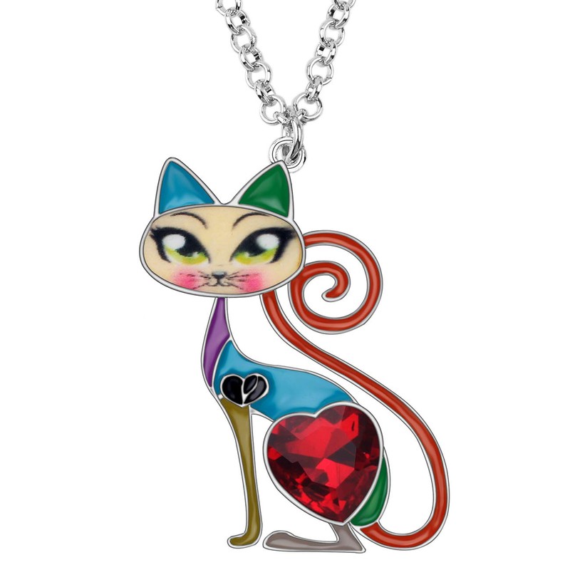 BONSNY Statement Enamel Alloy Chain Cat Necklaces Pendant Original Design For Women (Multi)