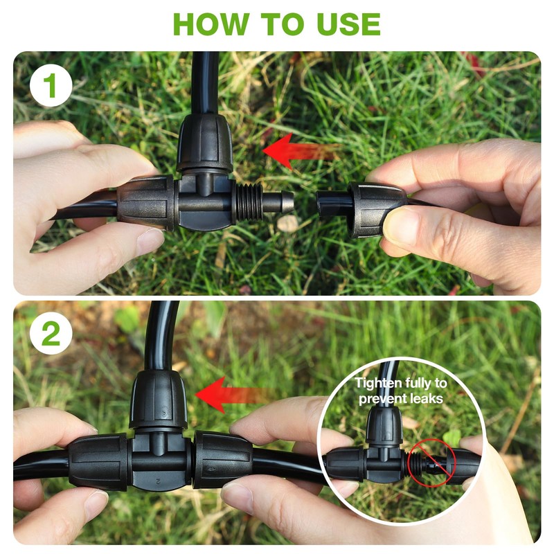 Each tee connector is made from high-impact plastic with an integrated one-piece design for strength and durability. The barbed ends provide a secure grip, while twist-lock nuts ensure a leak-proof seal in any weather condition.
