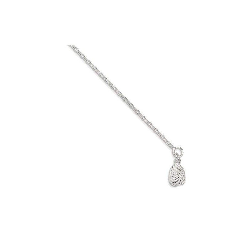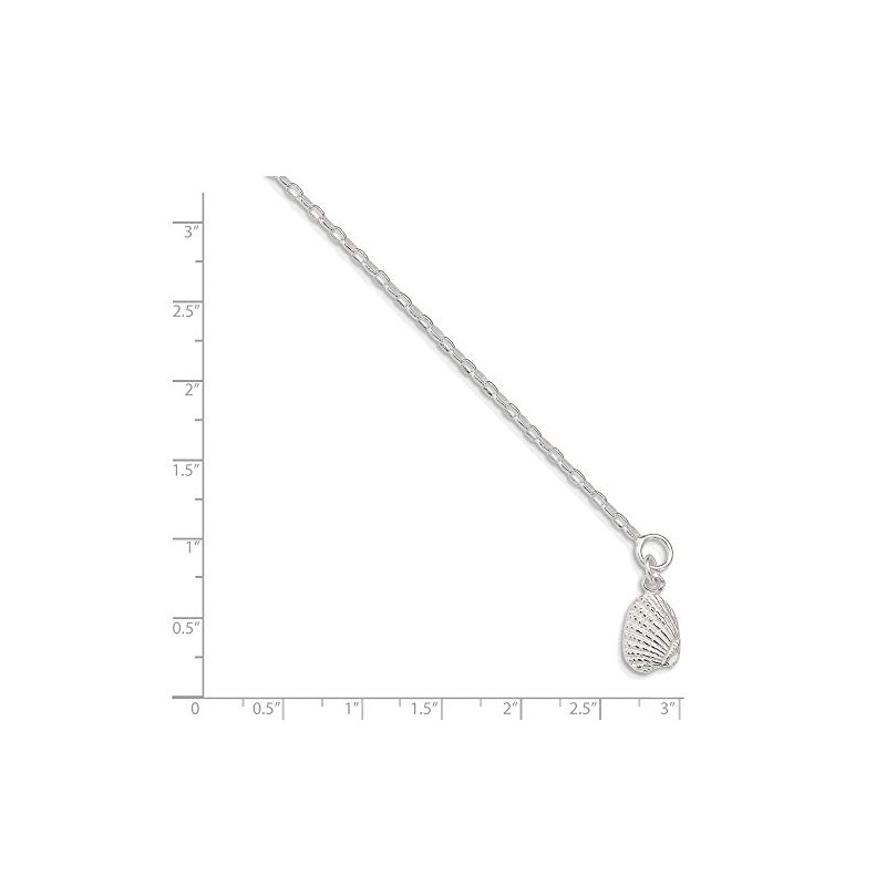 - Sterling Silver 10inch Solid Polished 3-D Shell Anklet