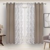 BONZER Mix and Match Curtains - 2 Pieces Branch Print Sheer Curtains and 2 Pieces Blackout Curtains for Bedroom Living Room Grommet Window Drapes, 37x63 Inch/Panel, Taupe, Set of 4 Panels