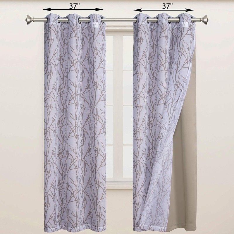 - WHAT'S IN THE PACKAGE?: Each set includes 2 pieces branch print sheer curtain and 2 pieces blackout curtains. Each curtain panel measures 37 wide by 63 inch long and finished with 6 grommets with 1.6 inch diameter that fits well with standard curtain rods, making them easy to install and move along the pole.