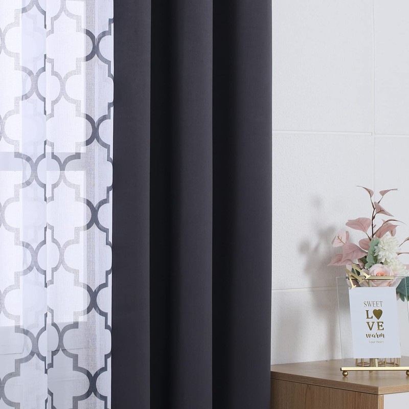- PREMIUM BLACKOUT AND SHEER FABRIC: BONZER mix and match blackout curtains are crafted from 100% polyester fabric in a certified STANDARD 100 by OEKO TEX factory. The sheer fabric is durable and soft with moroccan patterns design and the blackout curtains look elegant.
