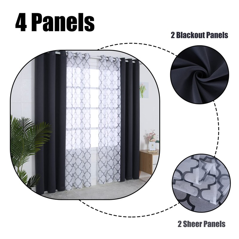 - Each package includes 2 pieces sheer curtains and 2 pieces blackout curtains