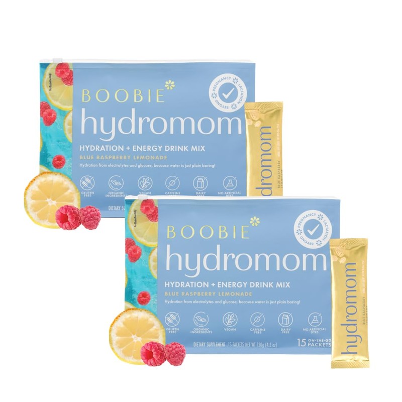 Boobie Brands Boobie Hydromom Superfood Electrolyte Drink Mix, Blue Raspberry Lemonade | Refreshing Energy & Hydration Boost for Mamas | On-The-Go & Travel Essentials for Pregnancy, Lactation, & Beyond - 2 Pack