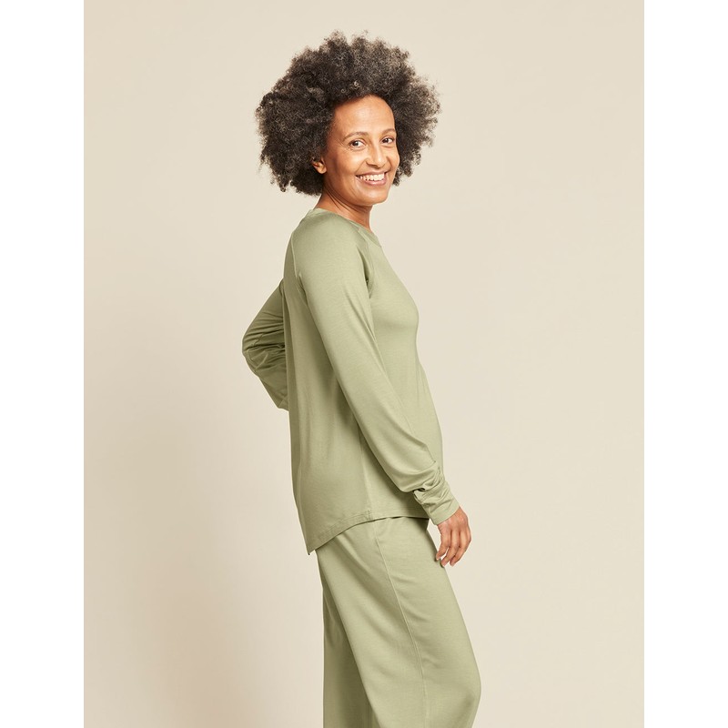 Sleep easy in our breathable, light to wear and soft to touch Goodnight Raglan Sleep Top. Our comfortable Goodnight Raglan Sleep Top is a relaxed, draped and easy fit and makes a great bamboo pj set with our Goodnight Sleep Pants. Mindfully made, with a softly curved neckline, raglan long sleeves and a curved high-to-low hem. No zippers, buttons, ties or other irritants - just ultra-soft fabric crafted in a loose, relaxed fit for bed.