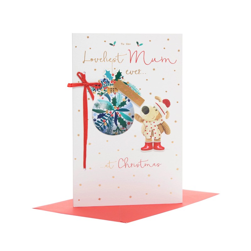 Boofle Embellished Loveliest Mum Ever Cute Bauble Christmas Greeting Card