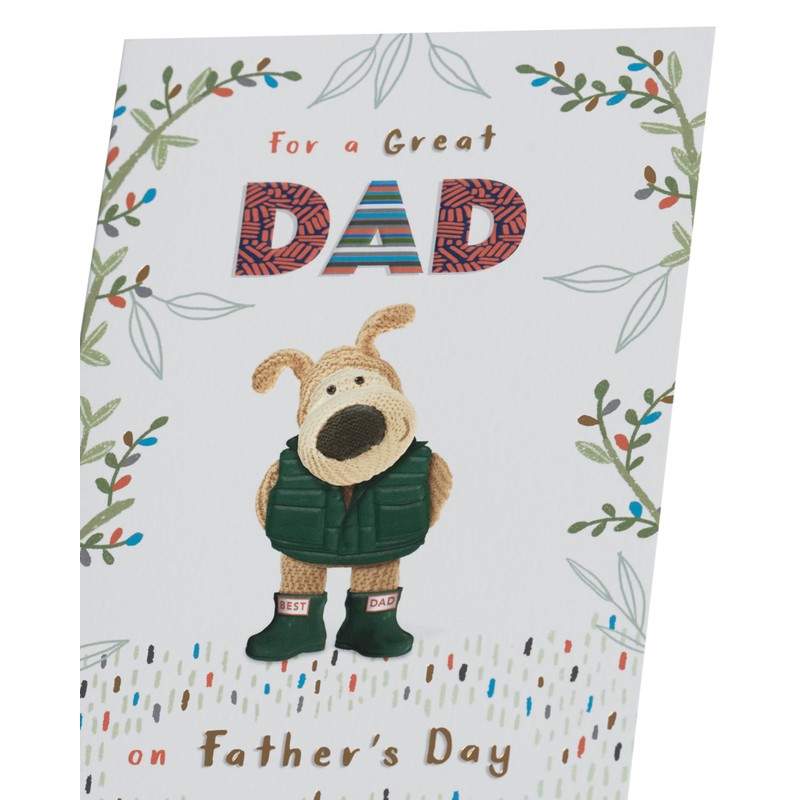 - DESIGN - Wish a happy Father’s Day to the best Dad with this cute card, featuring Boofle wearing wellies, finished with gold foil embossed elements for extra shine.