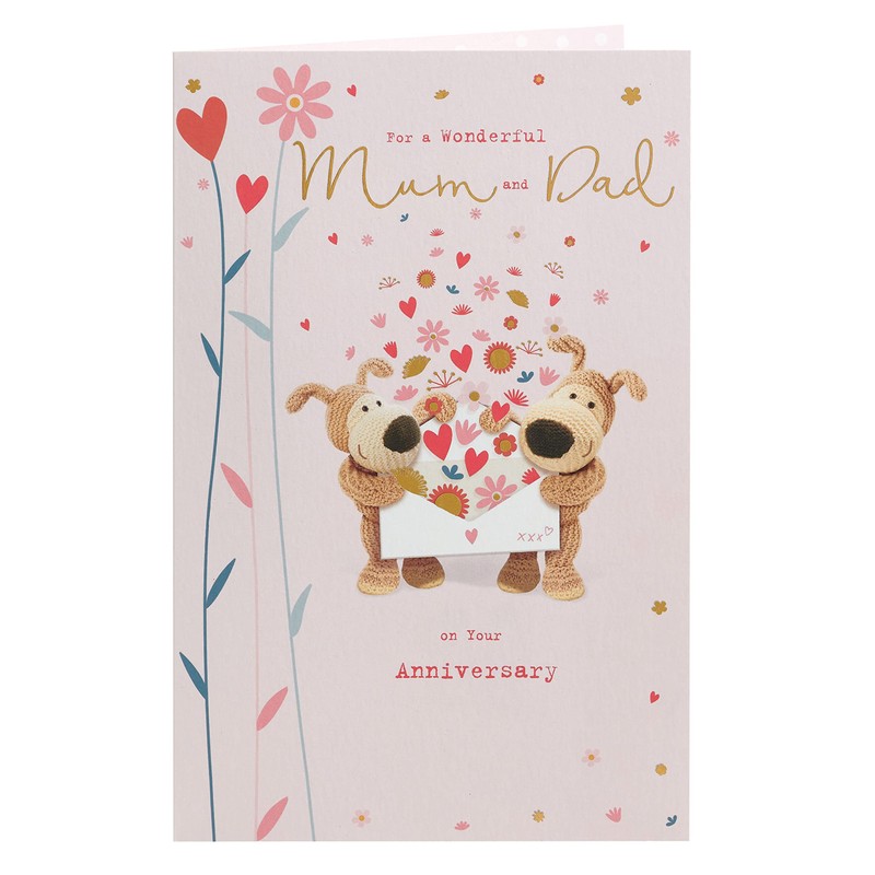 • Wish your mum and dad a lovely anniversary with this adorable Boofle card, embossed with gold foil detailing.