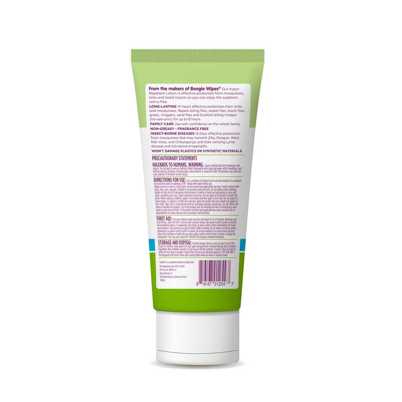 - LONG-LASTING PROTECTION: With a single application, Boogie Insect Repellent Lotion offers broad-spectrum protection for the whole family and effectively repels mosquitoes and ticks for up to 14 hours. Repels flies, gnats, chiggers, and no-see-ums for up to 8 hours.