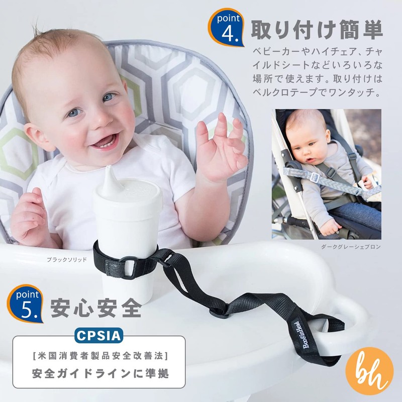 • The strap to hold the bottle is made of patented EVA material, so it will not let your baby mug or straw bottle go around!
