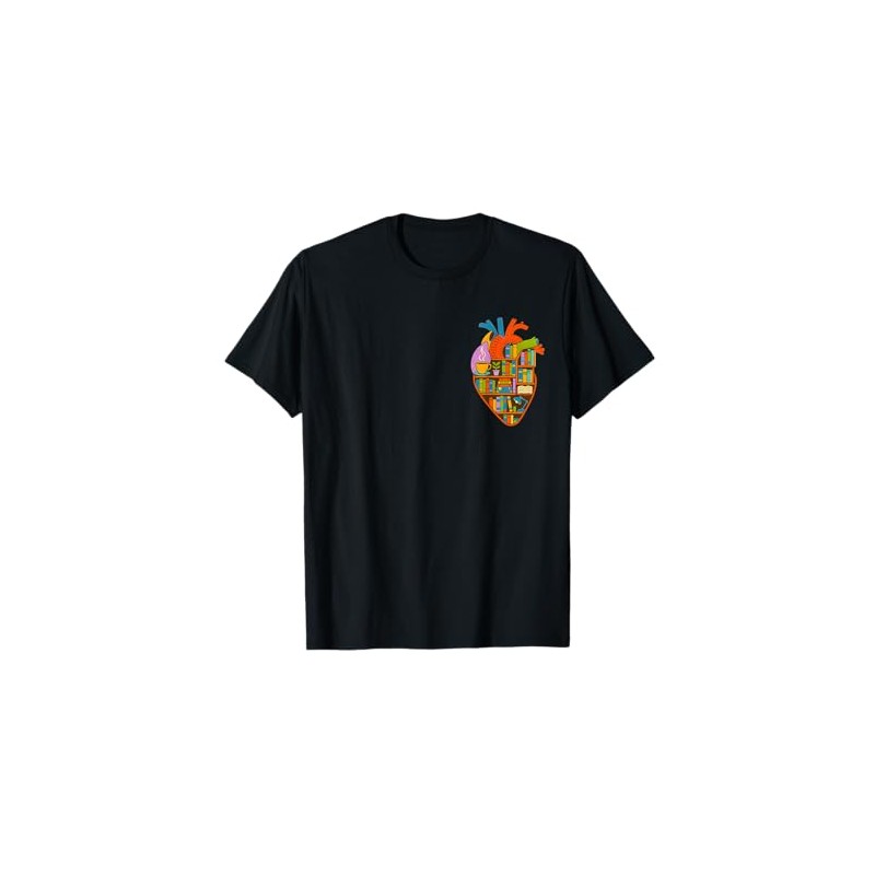 Book Lover Anatomical Heart, Colorful Library Design T-Shirt