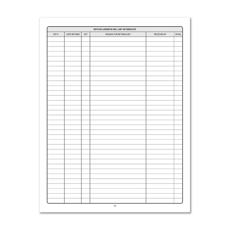 This professional book will help you track your keys. There are places to enter what keys are no longer in use, lost, or obsolete.