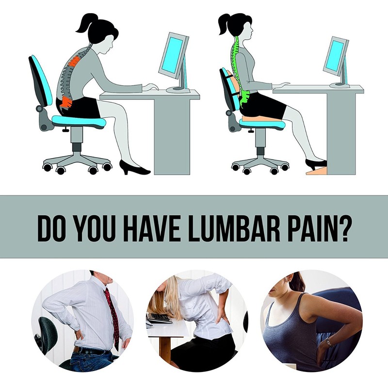 - Ergonomic design follows the nature curve of the lumbar body part to provide comfortable firm support and reduce strain on the lower back.
