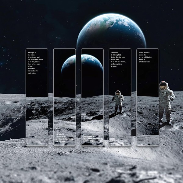 - Size: Each bookmark is 5.1 x 1.2 inches (13 x 3 cm), with a moderate thickness that will not be missed in a book. Design:Universe,Star,Moon and Landscape theme design creates a mysterious atmosphere when you read. Versatile: Can be used as bookmark, framed or displayed on cork board, and can be used as interior decoration. PERFECT GIFT: This set of 5 makes a great gift for birthdays, school entrance celebrations, friends and family. Decoration: DIY bookmark card that can be used to spell out a memorable verse and can also be used as wall or desk decoration