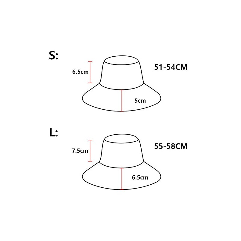 • HAT DETAIL - The Boolavard Unisex 100% Cotton Packable Summer Travel Bucket Beach Sun Hat, Cute & Comfortable Fit. Hat Size Measurements: S/M- 22"-22 3/4"(56cm-57.8cm),L/XL-23 1/8"-23 7/8"(58.7cm-60.6cm) and Brim measures 2 - 2.25 inches. Brass tone ventilation eyelets make your head Breathe. Designed not only in protecting from sunshine and wind, but also stylish in casual occasions day or night for your activities. Adorable and stylish cotton everyday bucket hat