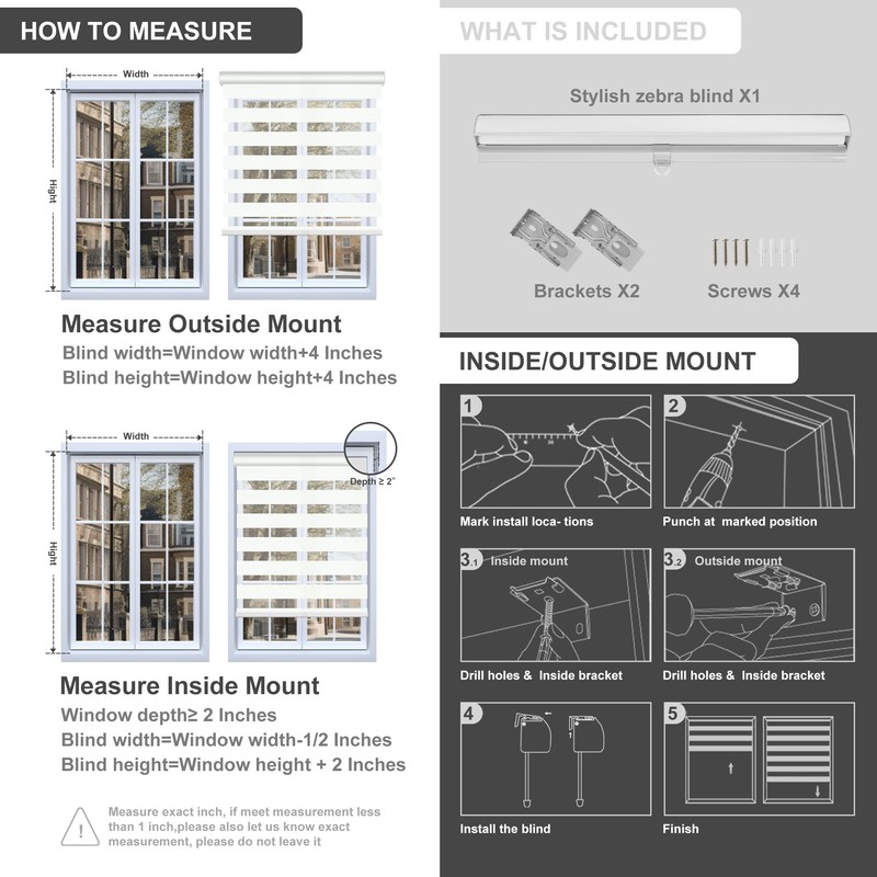 - 【User-Friendly Installation】Our zebra shades are designed for a seamless setup. With clear instructions and necessary hardware included, installation is quick and easy, making them an ideal choice for DIY enthusiasts.