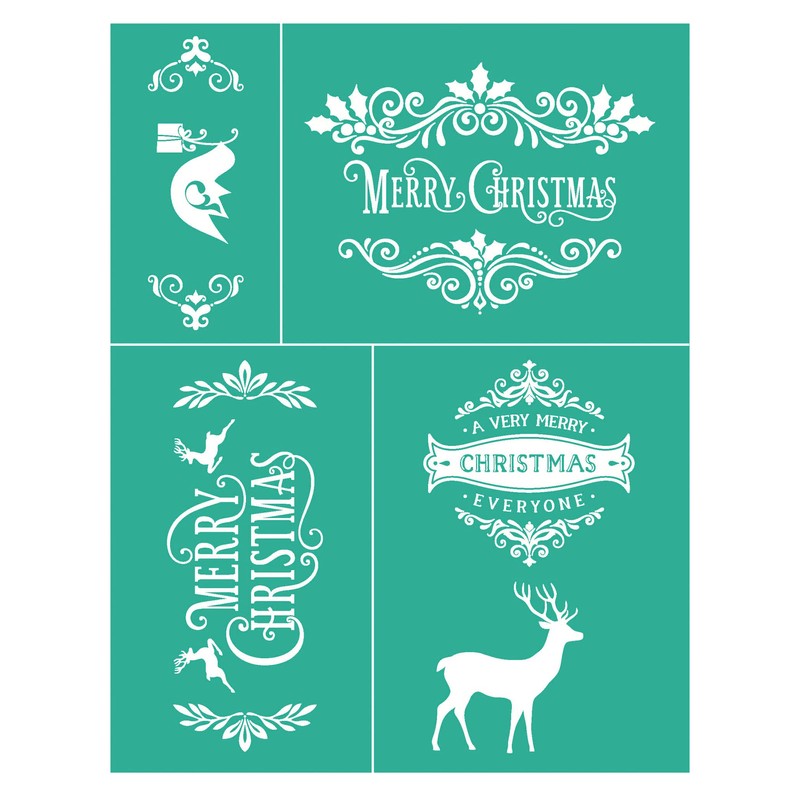 BOOLOOEN Christmas Stencils,Reusable Self-Adhesive Silk Screen Printing Stencil Washable Mesh Transfers for Painting on Wood DIY Making Home Decor,Canvas,Bags,t-Shirt,Xmas Plaque