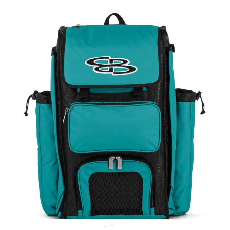 Boombah Catchers Superpack Bat Bag - 23-1/2" x 13-1/2" x 9-1/2" - Black/Teal - Holds 4 Bats - Backpack Version (no Wheels)
