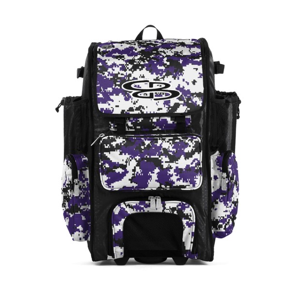 Boombah Rolling Superpack Baseball/Softball Gear Bag - 23-1/2" x 13-1/2" x 9-1/2" - Digital Camo Black/Purple - Telescopic Handle - Holds 4 Bats - Wheeled Version