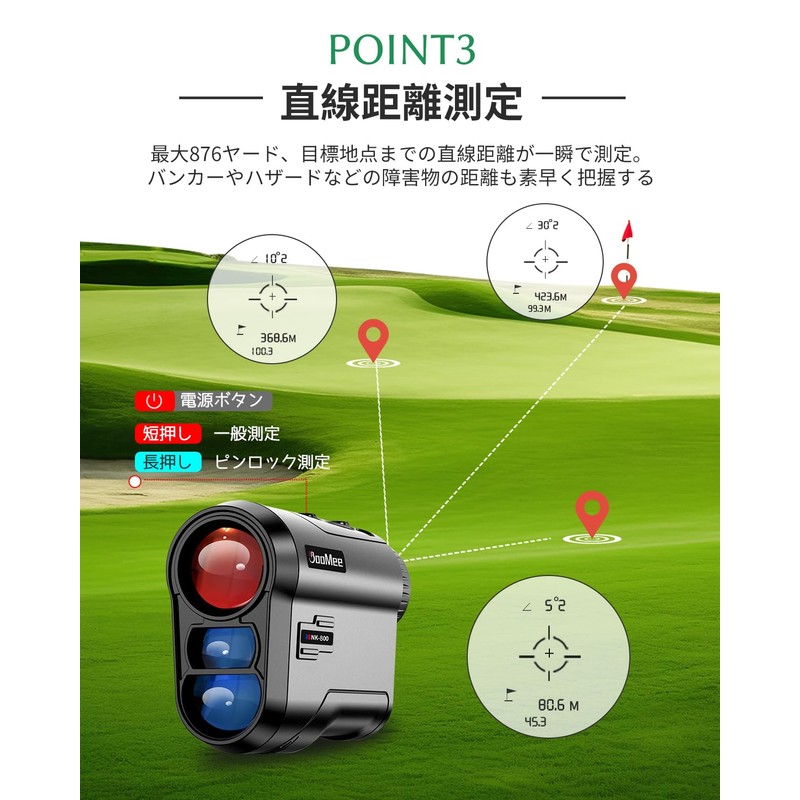- (Equipped with optical 6.5X lens & measuring distance 800 yards) Equipped with a 6.5x optical lens with multi-layer coating and ultra-high light transmission glass to make images extremely clear. It is compatible with measuring up to 800 yds. It is not only suitable for golf, but also for various occasions such as shooting, hunting, rounds, mountain climbing, fishing, agriculture, construction sites, surveying, etc
