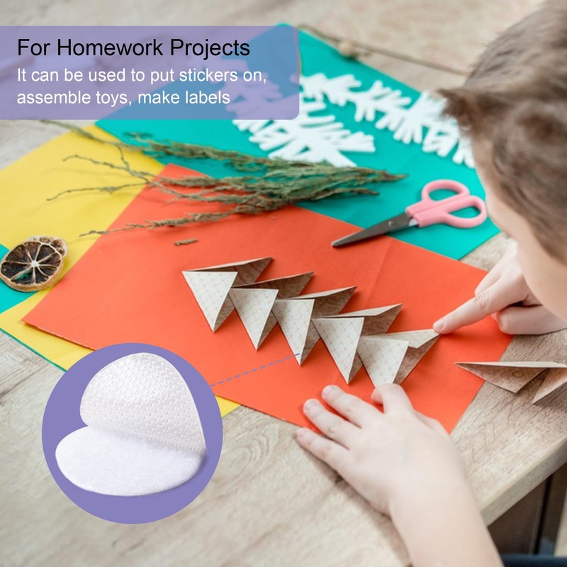- 【【WIDE COMPATIBILITY】: This hook & loop dots can be used for getting items fixed,It can be attached to most of things, especially for clean smooth surfaces of paper, plastic, glass, leather, metal, etc. Great for school projects, organization around the home, office and so on. Such as file folder learning activity games, visual calendars, interactive books, sorting games, fastening badges to student desks. Label binders, report covers and laminated documents. Safe for children.
