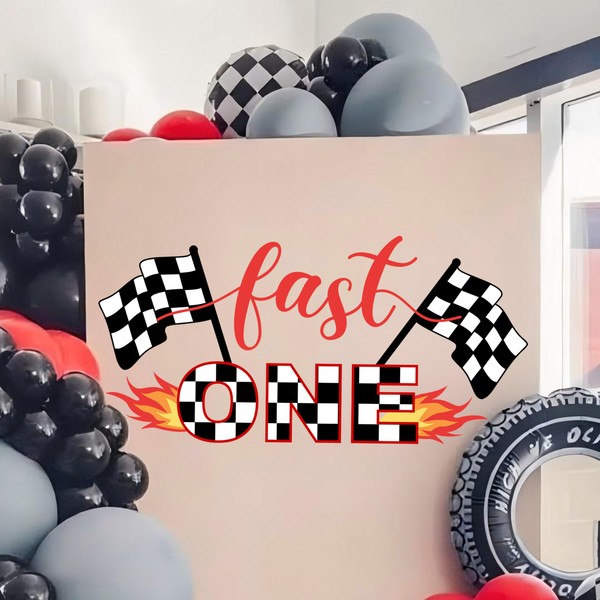 Transform any racing-themed celebration with this eye-catching Fast One checkered flag wall decal. Measuring an impressive 23.62 x 11.8 inches, this vinyl sticker features a bold design with classic black and white checkered flags, stylish red lettering, and dynamic flame accents. Perfect for birthday parties and racing-themed events, this peel-and-stick decoration is easy to apply on drywall and other smooth indoor surfaces. The matte finish provides a professional look while maintaining visibility from various angles. The design incorporates racing motifs that capture the excitement and energy of motorsports, making it an ideal backdrop for photo opportunities and party spaces. This single-use vinyl decal adds instant personality to any room and coordinates beautifully with racing-themed party supplies. Whether you're planning a special celebration or creating a themed room decoration, this striking wall sticker brings the thrill of the racetrack to your space.