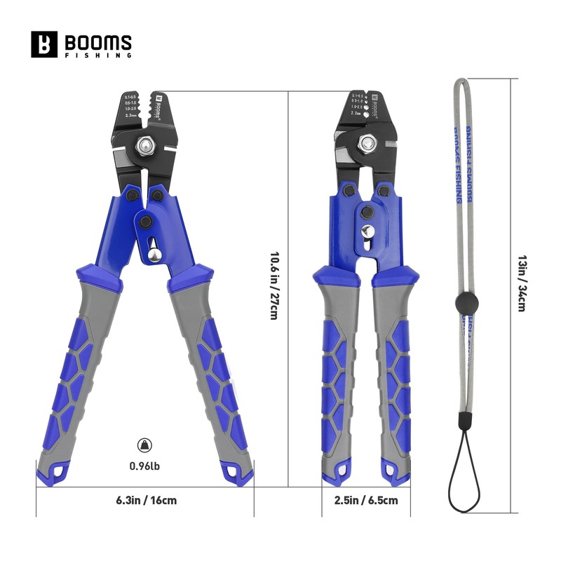 Booms Fishing Crimping Tool Kit: 10.6in Fishing Crimping Pliers with Side Wire Cutters - Up to 2.2mm Crimper, XW40