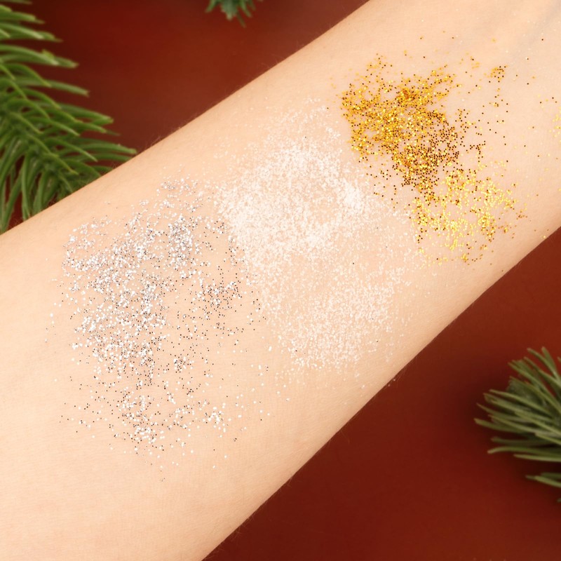 1. Our glitter powder in 3 different colours, gold, silver, white, glitter extremely and shiny especially when illuminated by lights. Perfect for DIY festive decorations.