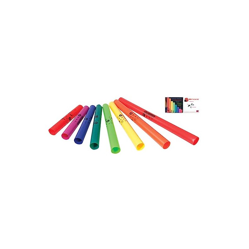 - Includes: eight note diatonic set of tuned percussion tubes, (2) octavator caps, "Whack Tracks" CD and DVD