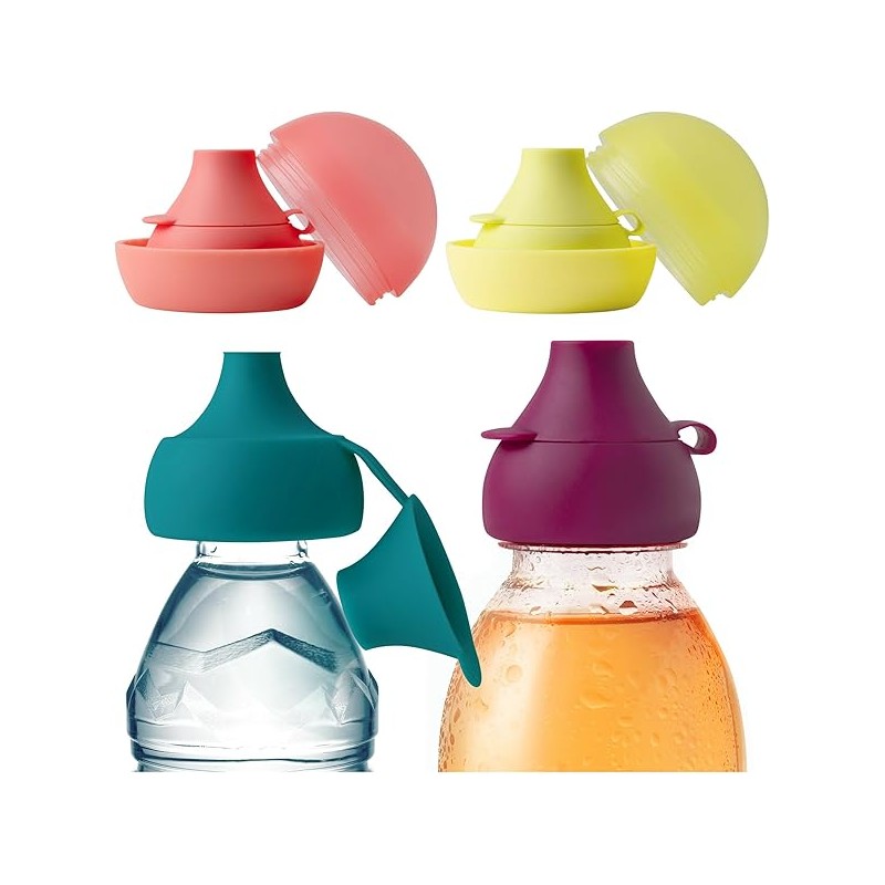 Boon Snug Sip Universal Water and Juice Silicone Bottle Toppers - Soft Spout Conversion Caps with Spill Proof Valves - Silicone Bottle Covers for Travel - Includes 4 Bottle Toppers and 4 Cases