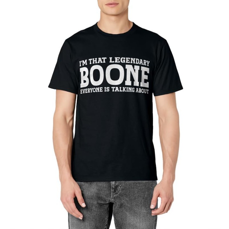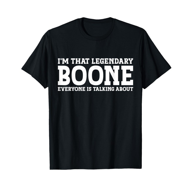 - I'm That Legendary Boone Everyone Is Talking About. Boone Personal Name Gift Boone First Name Present. This Cool Boone Tee is a Funny Birthday Gift for Boone for Family Members or Friends. Boone Christmas Gift or Boone Birthday Gift.