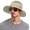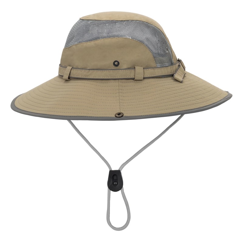 Boonie Sun Hat Men Wide Brim UV Protection Summer Hat for Safari Hiking Camping, khaki with ribbon