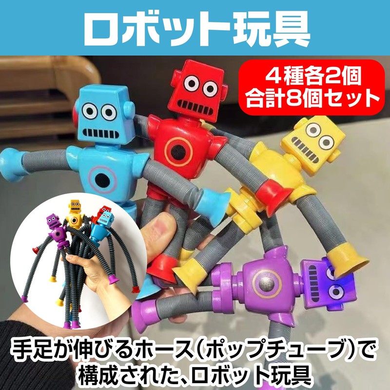 Boono Pop Tube Robot Toys Extend Limbs Robot Toy ty Funny Precent Suction Cup Toys 4 Colors Set of 4 (8pcs)