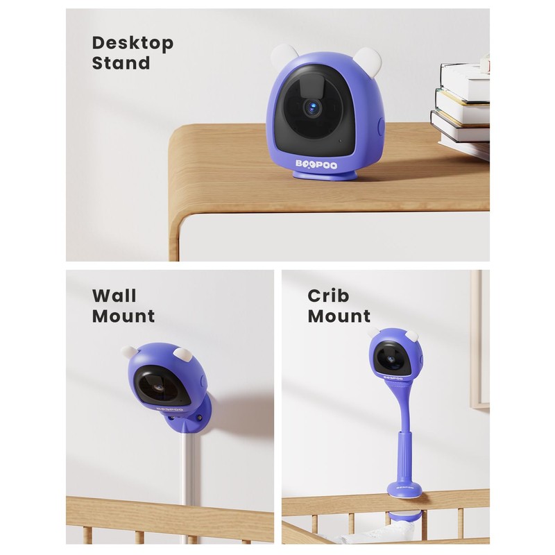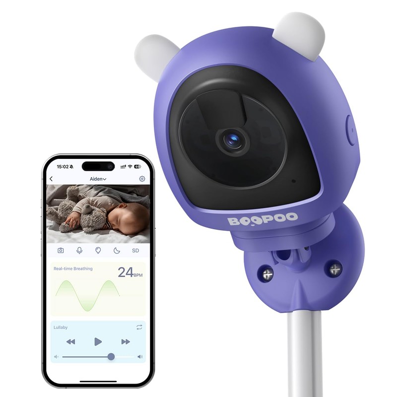 BOOPOO Smart Baby Monitor 2K with Breathing Monitoring (No Extra Fee), Night Vision, Cry & Safe Zone Detection, 2-Way Audio, 2.4/5GHz WiFi, 32G Local Storage, 12 lullabies (Wall Mount)